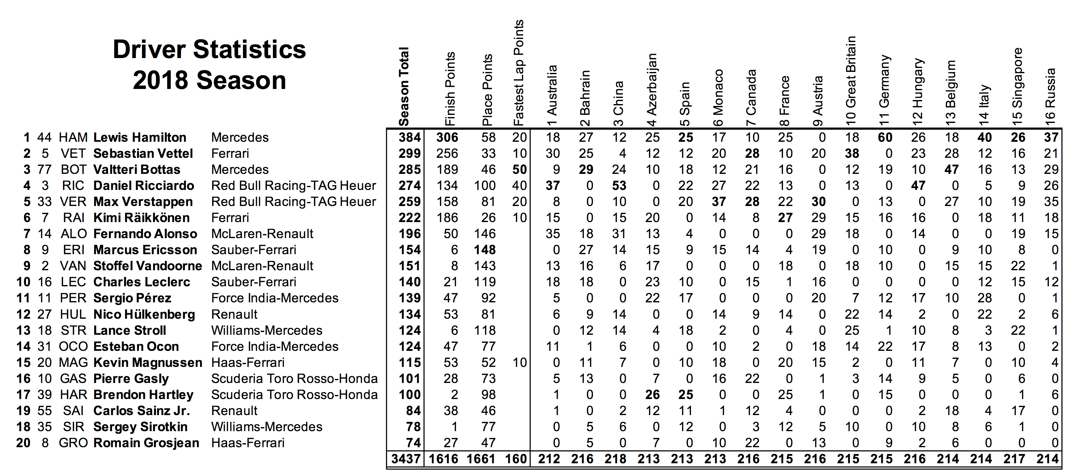 | Overall Standings (16 Rounds) | ||