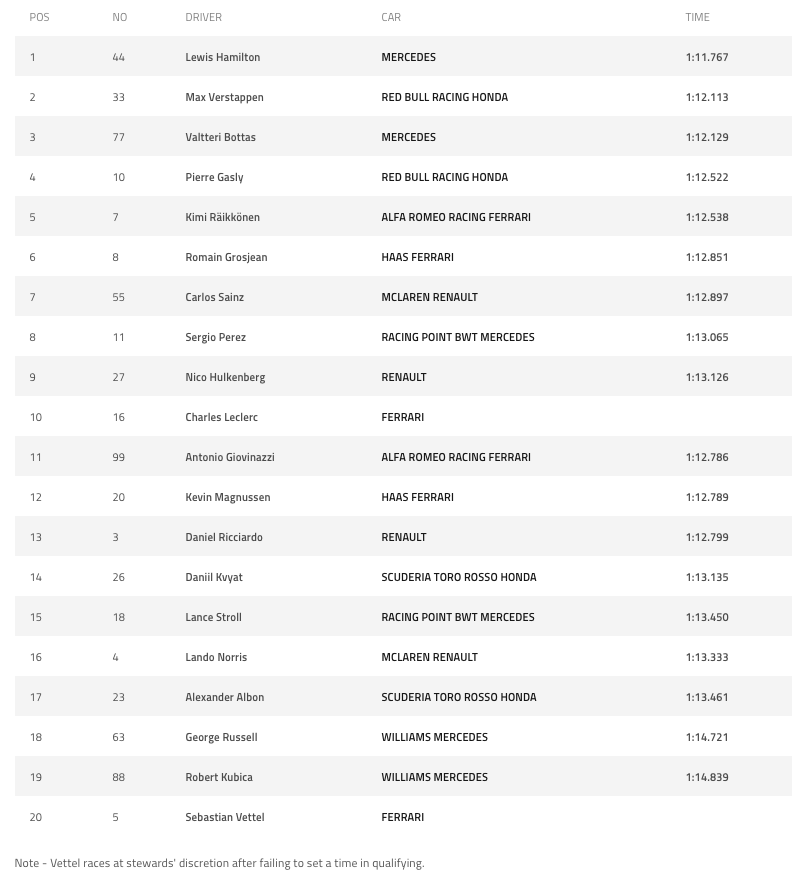 German Grand Prix Starting Grid (formula1.com at 12:18 PDT)