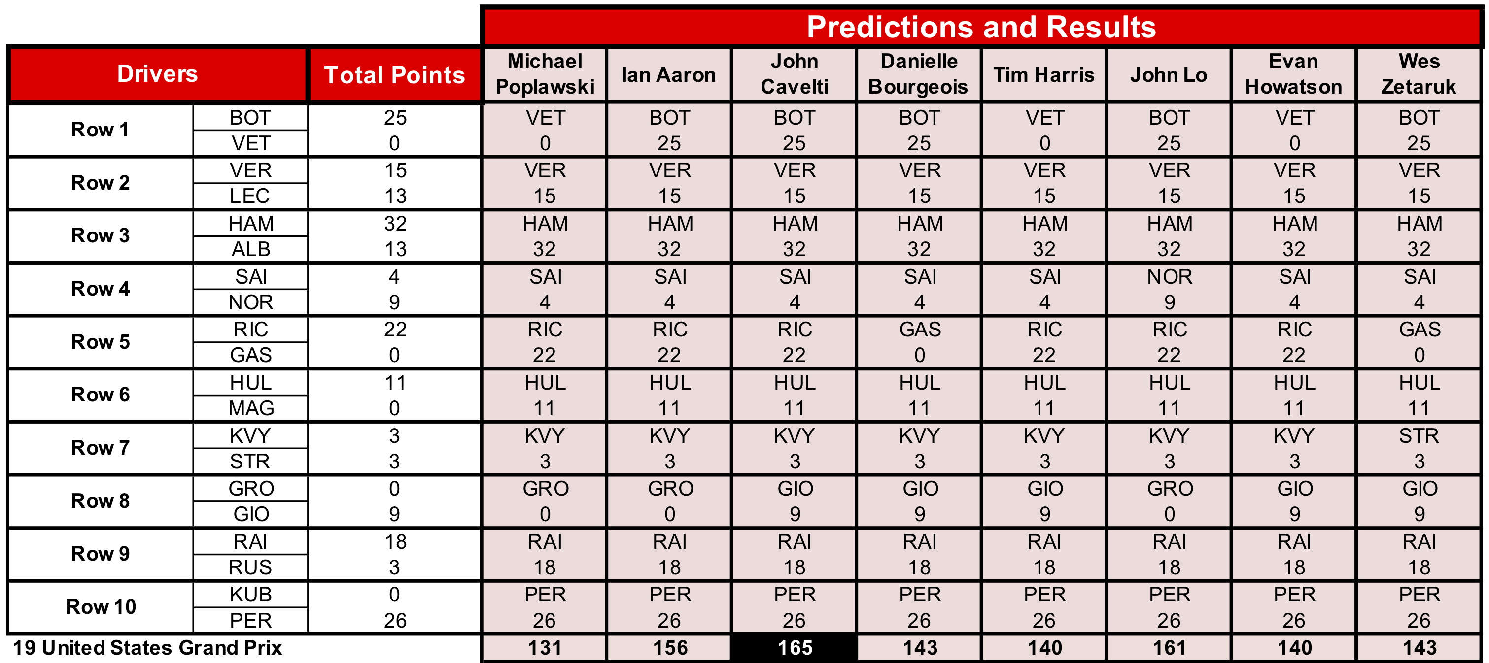 For download (PDF): FIA Formula 1 World Championship Prediction Challenge! 2019 19 United States Grand Prix