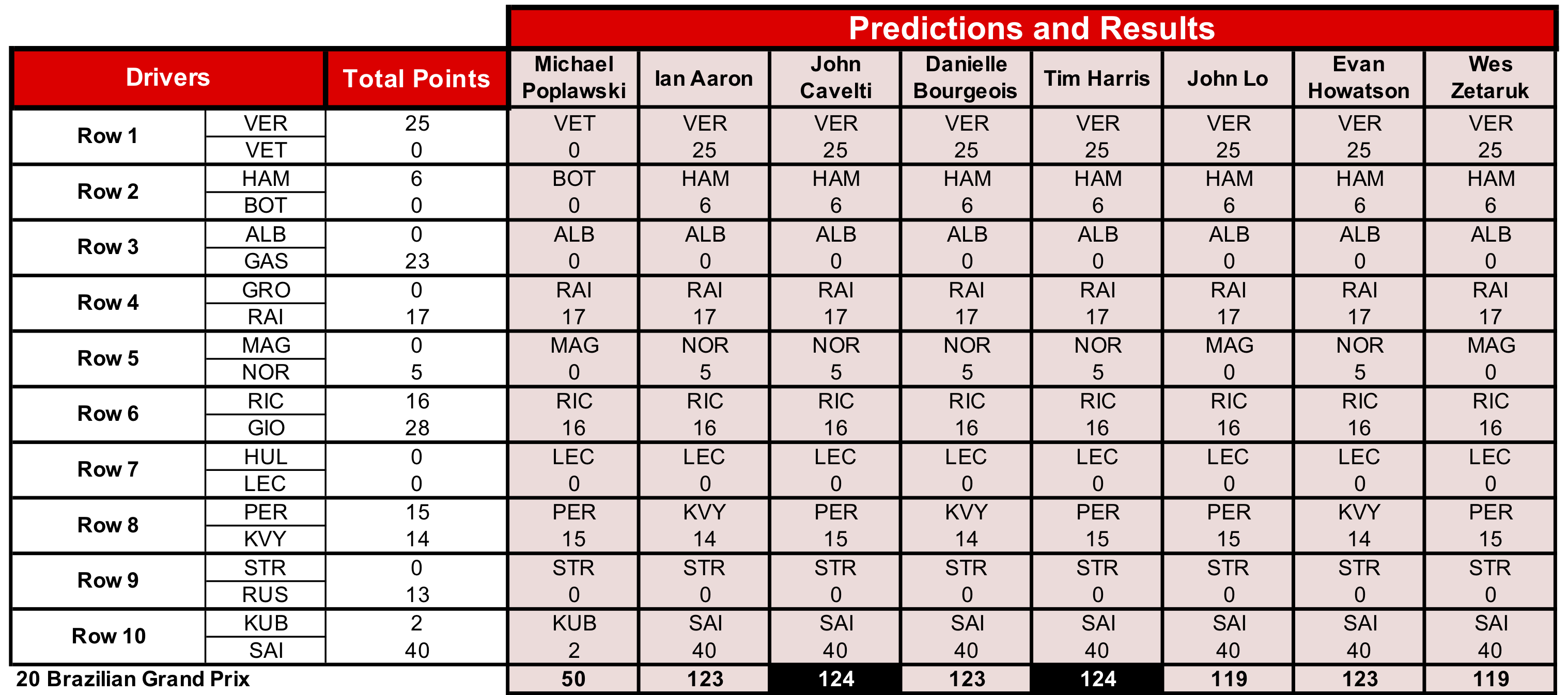 For download (PDF): FIA Formula 1 World Championship Prediction Challenge! 2019 20 Brazilian Grand Prix