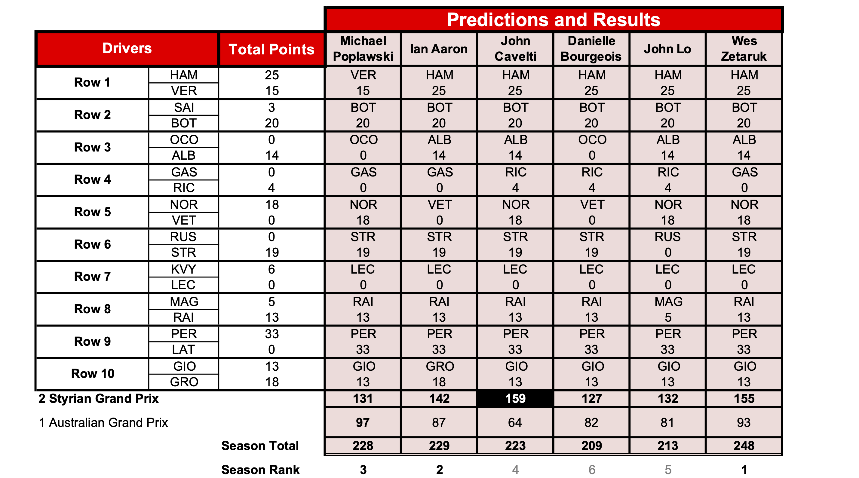 For download (PDF): FIA Formula 1 World Championship Prediction Challenge! 2020 2 Styrian Grand Prix