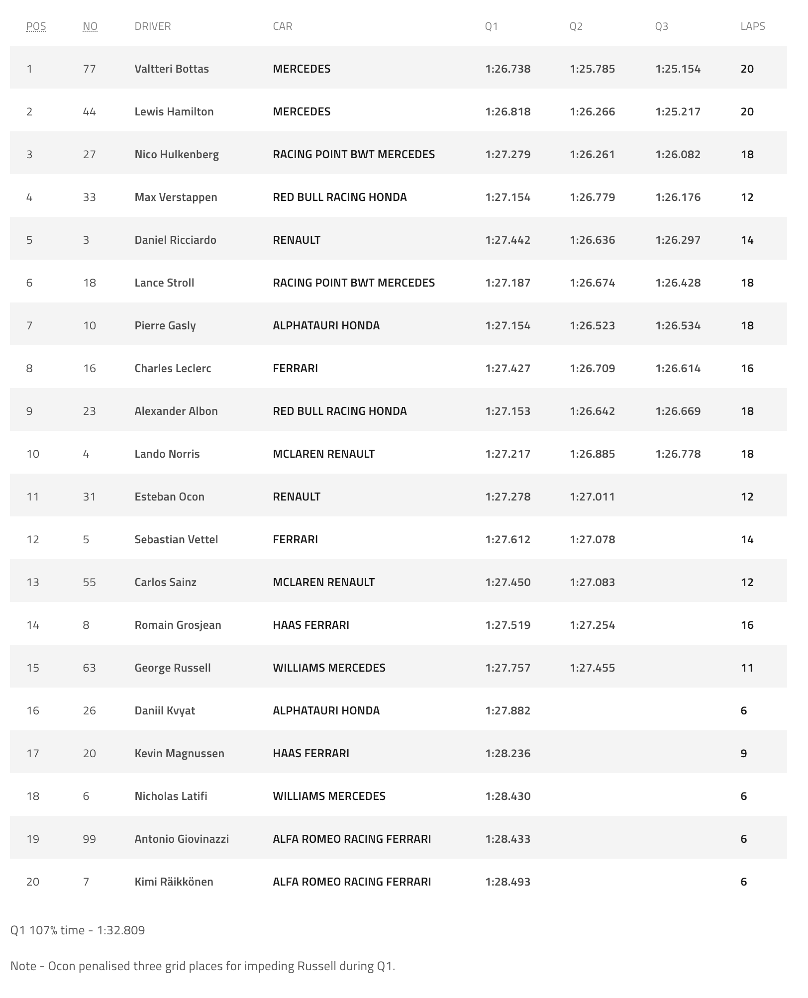 The Prediction Form is now available, based on the grid available at this time (using qualifying results and applying the grid penalty to Ocon) and is due by 23:00 Pacific Time Saturday.