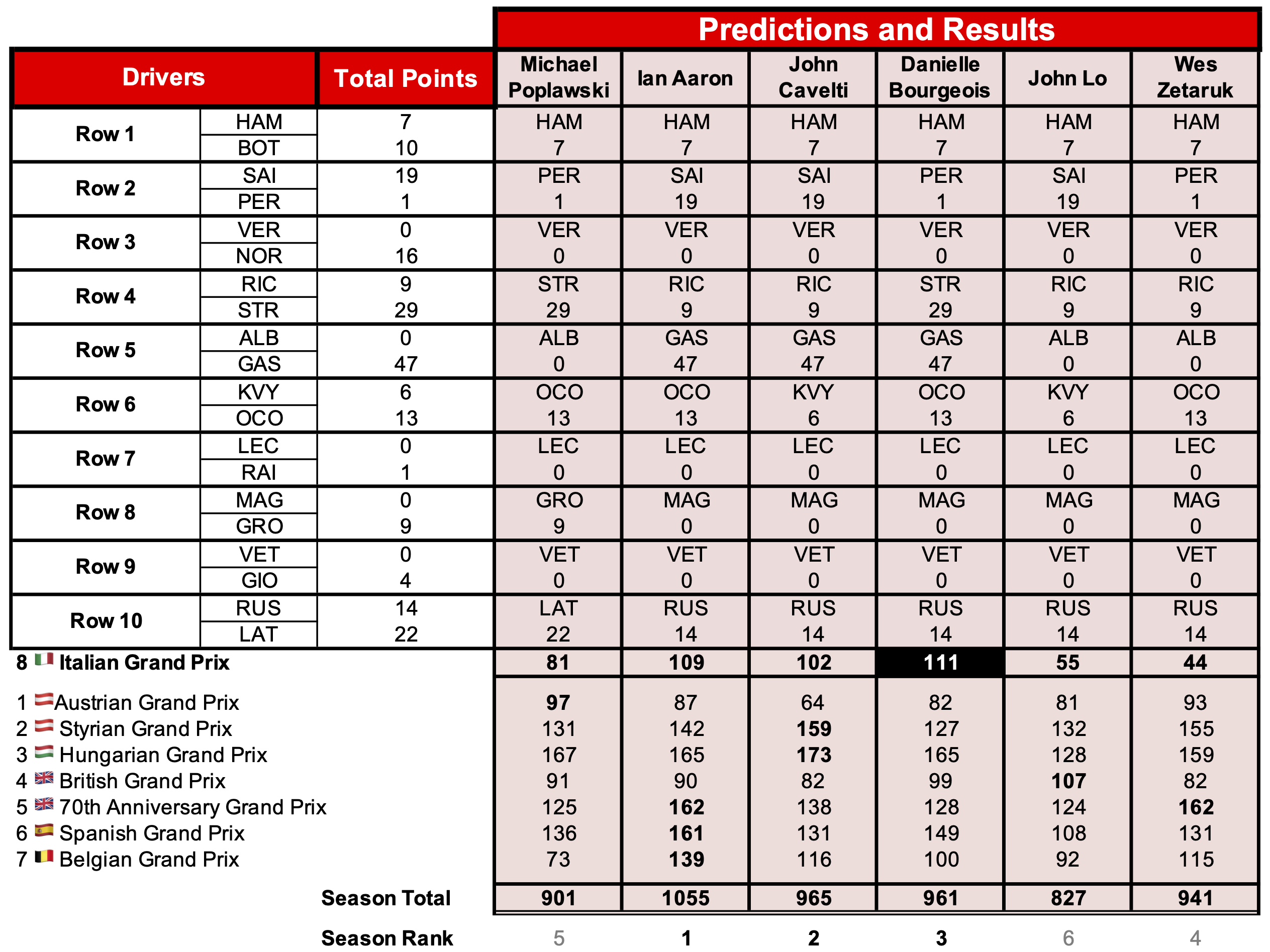 FIA Formula 1 World Championship Prediction Challenge! 2020 8 Italian Grand Prix