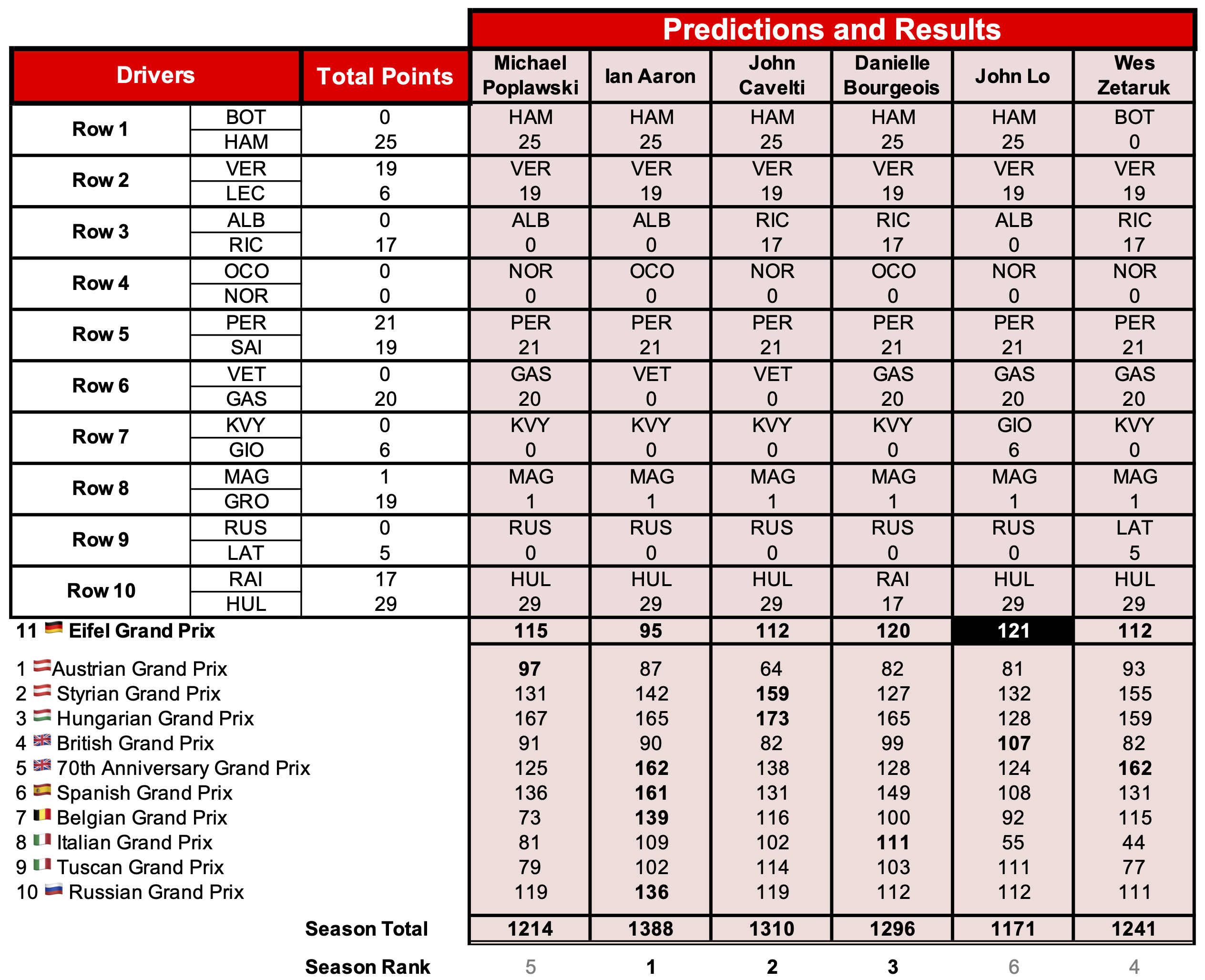 - FIA Formula 1 World Championship Prediction Challenge! 2020 11 Eifel Grand Prix