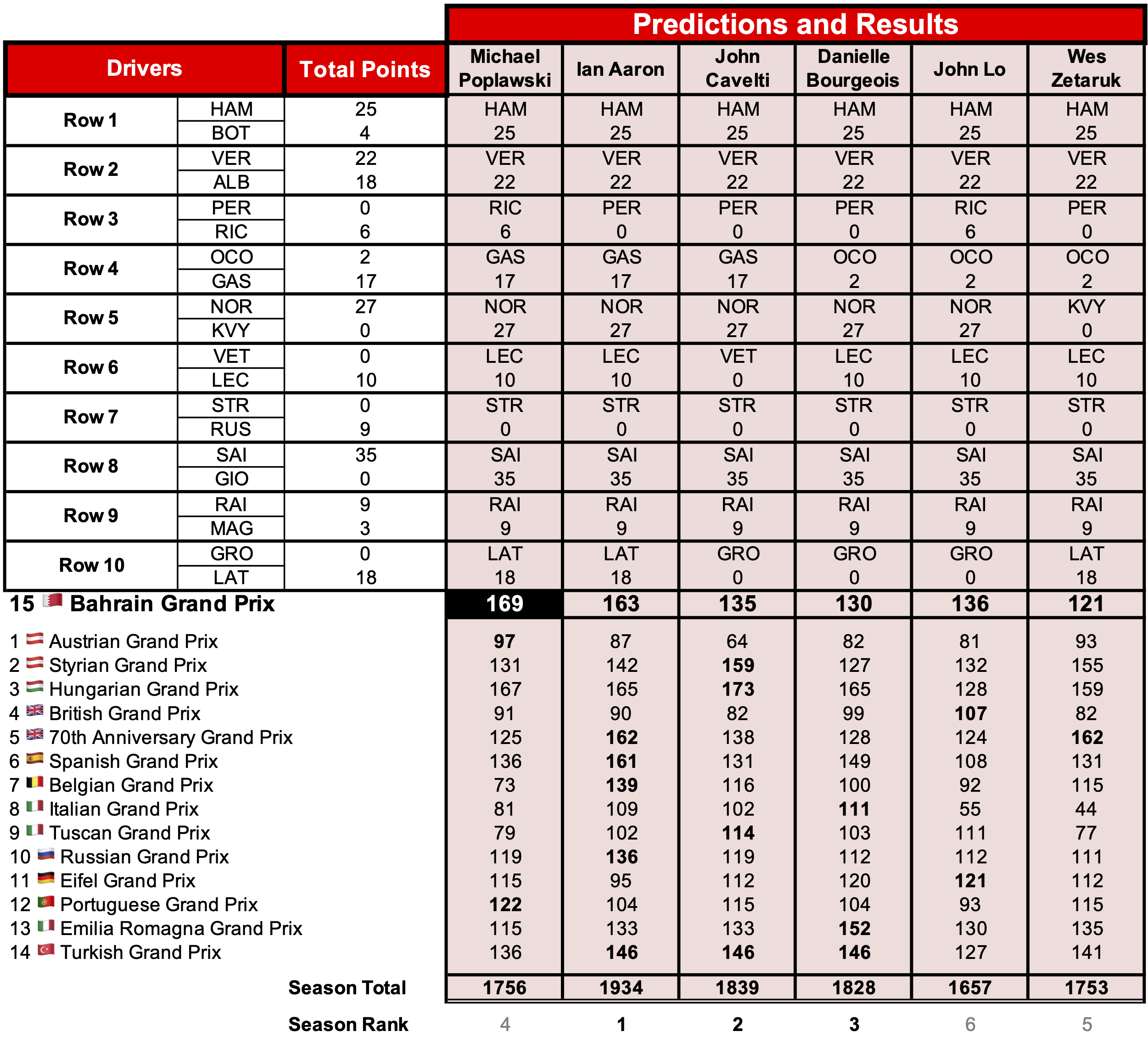 - FIA Formula 1 World Championship Prediction Challenge! 2020 15 Bahrain Grand Prix