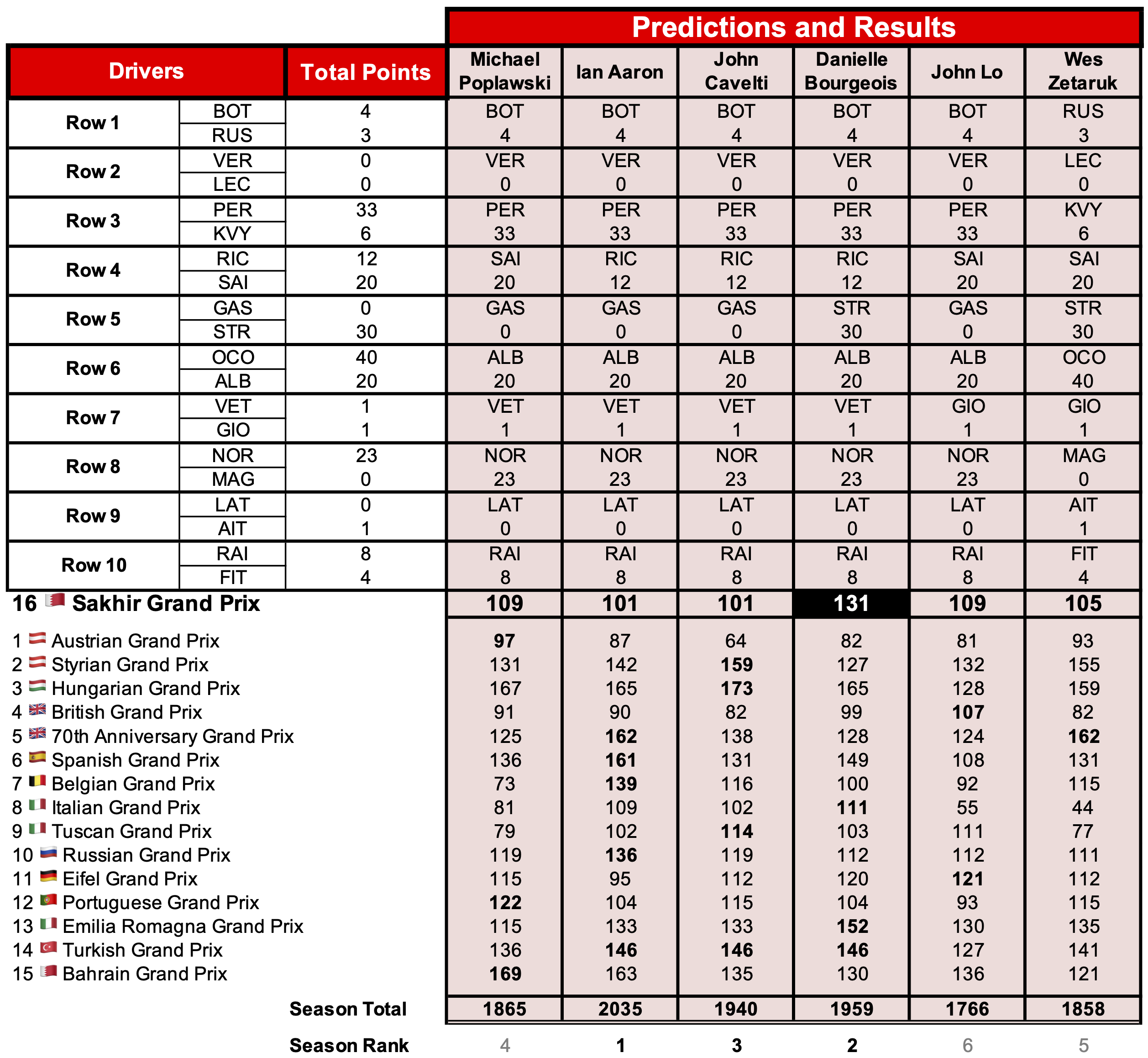 - FIA Formula 1 World Championship Prediction Challenge! 2020 15 Sakhir Grand Prix