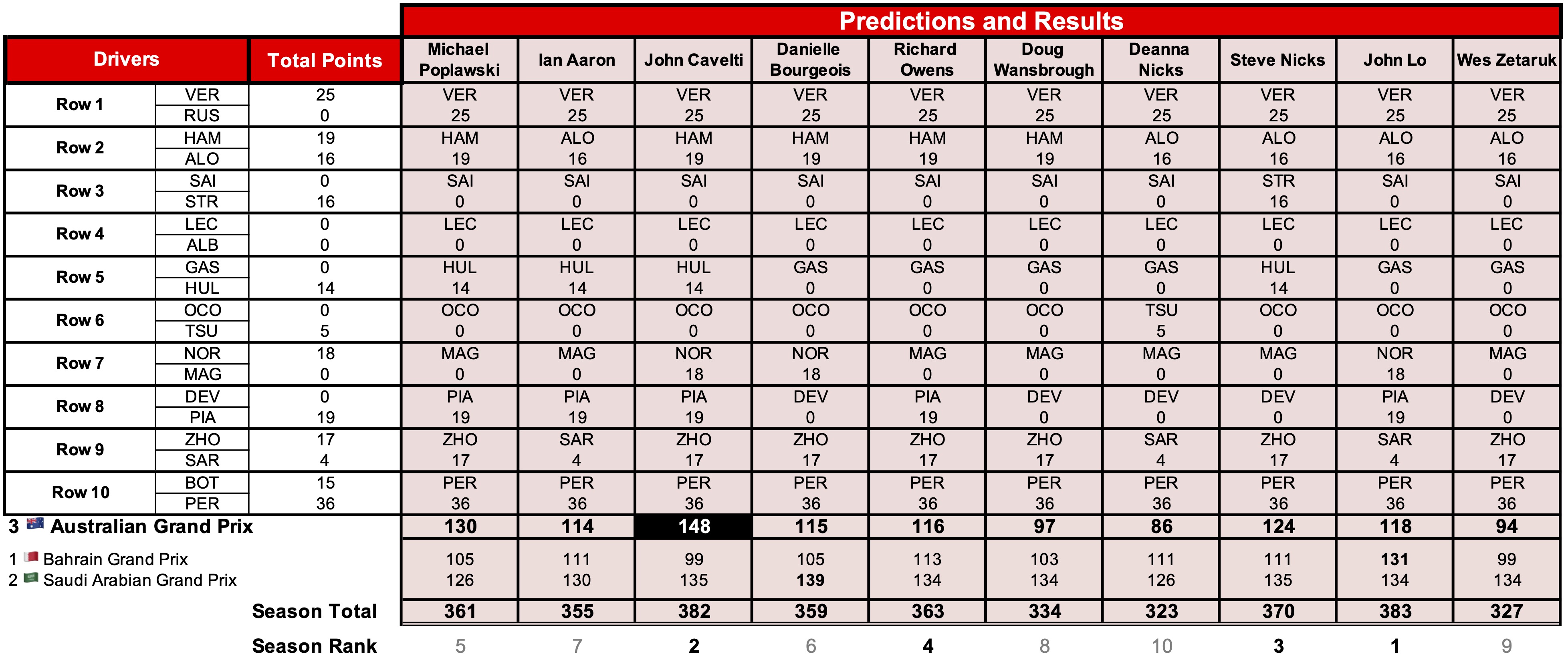 | Standings after 3 🇦🇺 Australian Grand Prix | |||