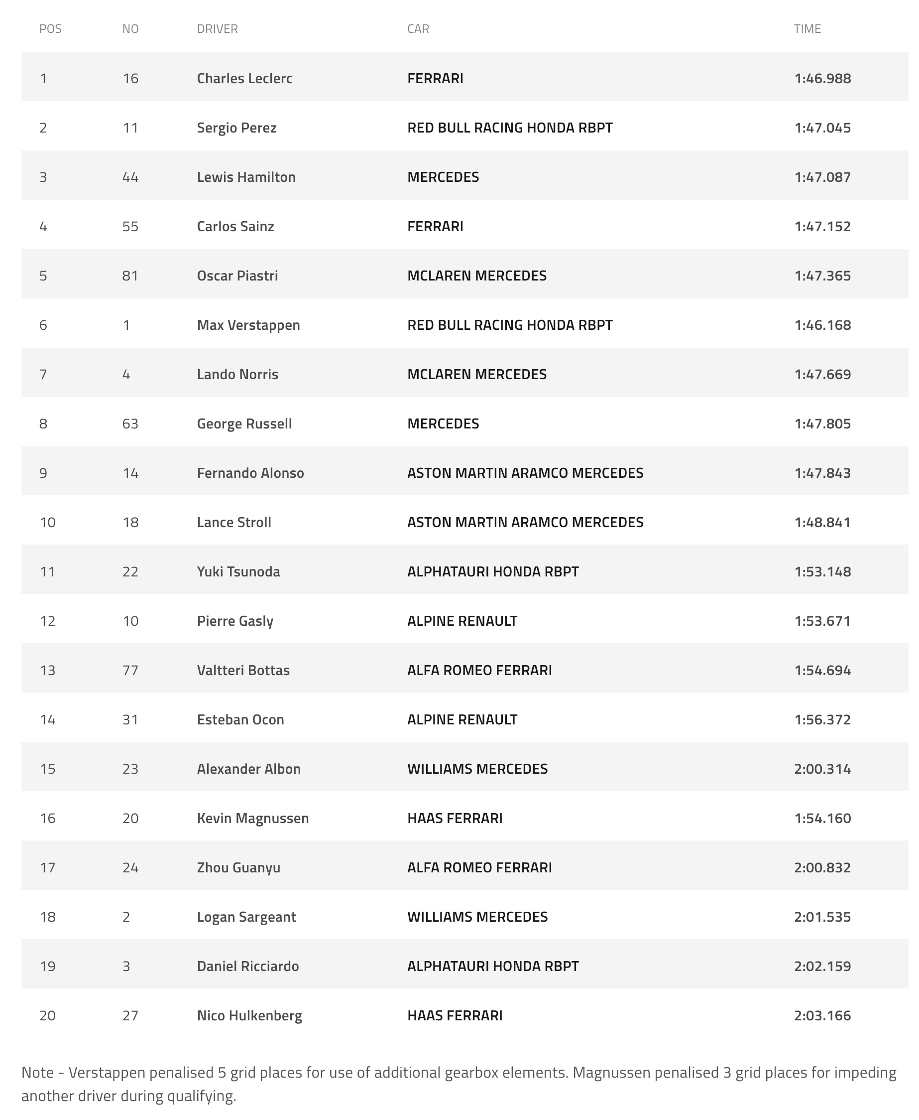 The Prediction Form is now available, based on the Grid posted at Formula1.com at this time