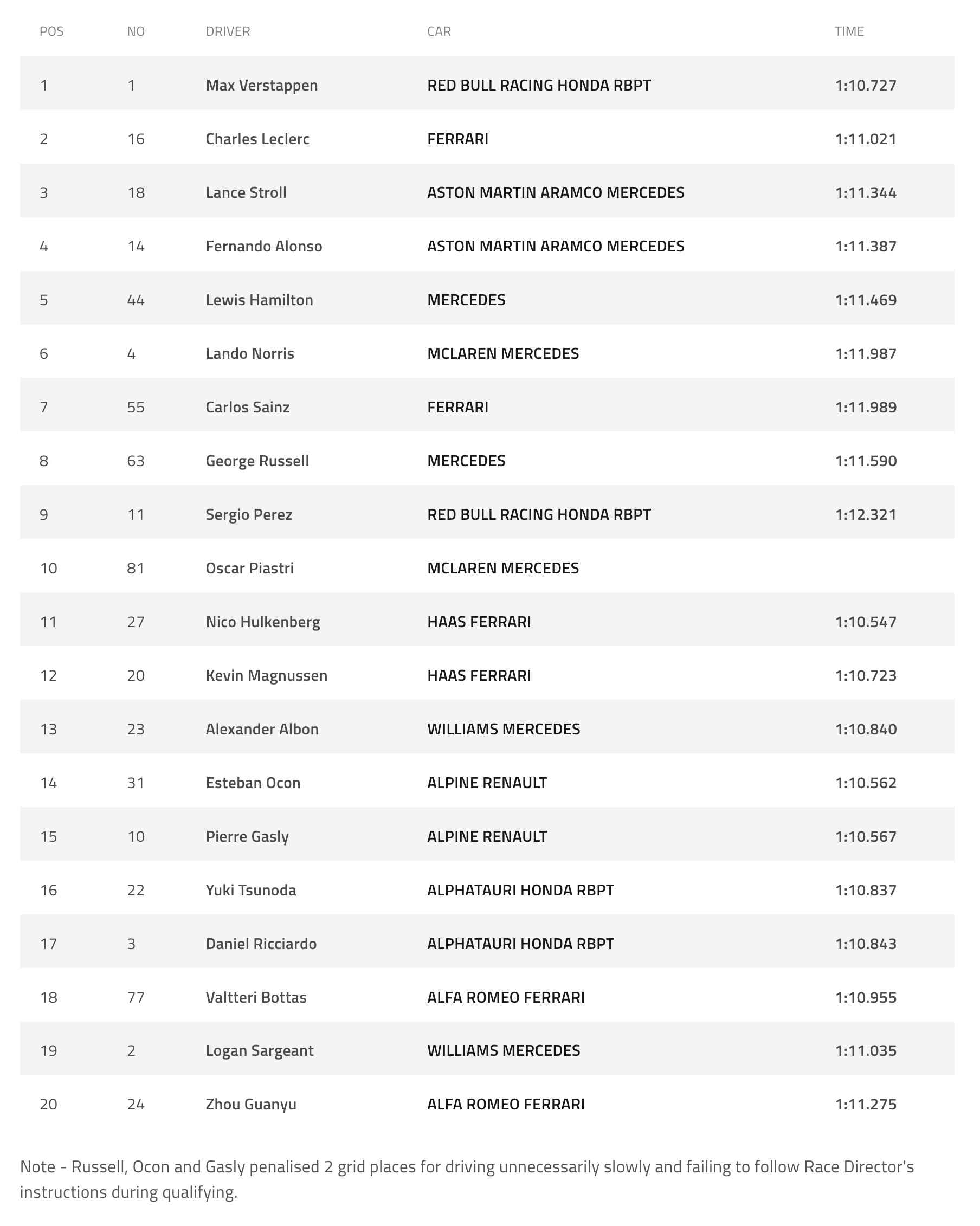 Starting Grid