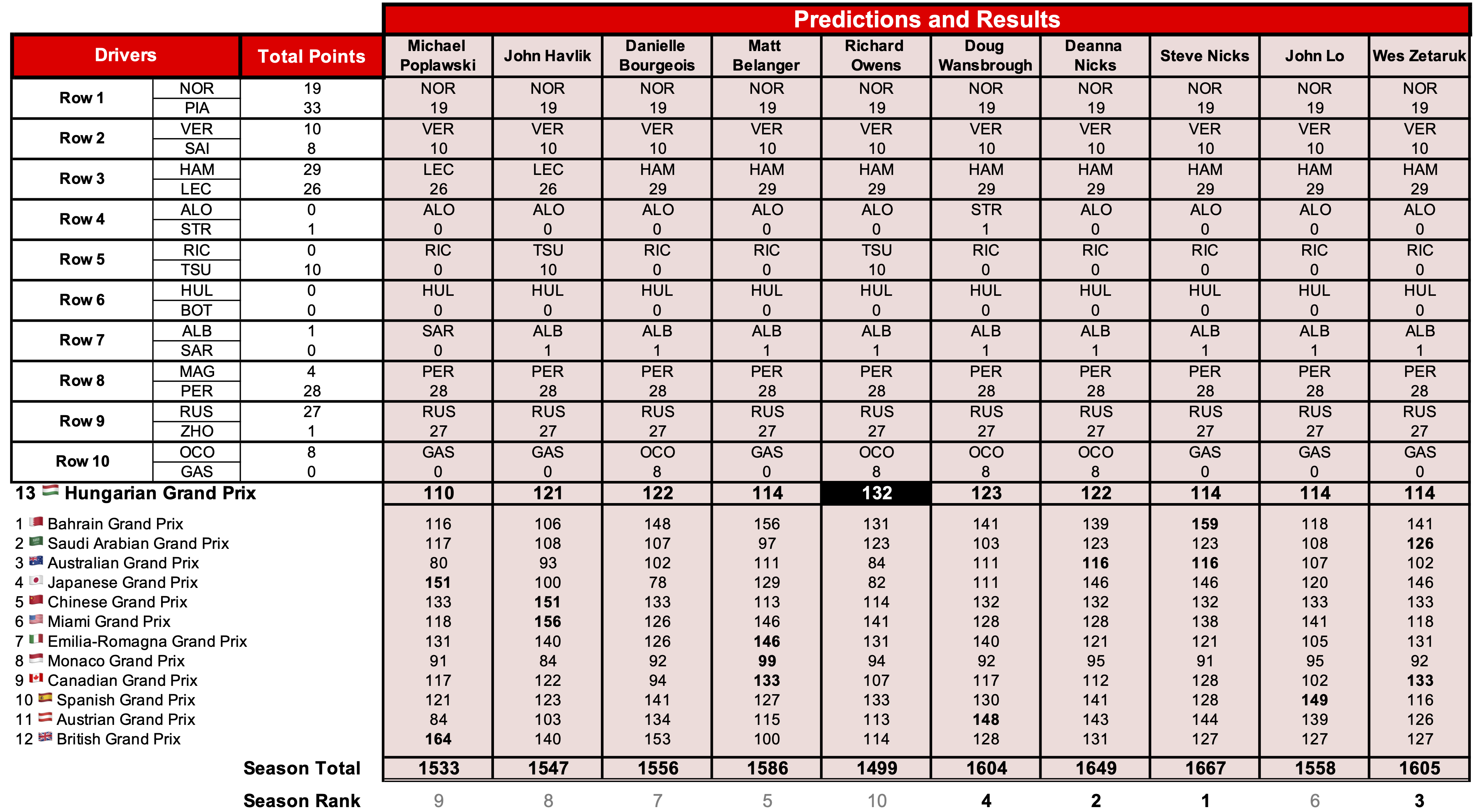 | Through 13 🇭🇺 Hungarian Grand Prix | ||
