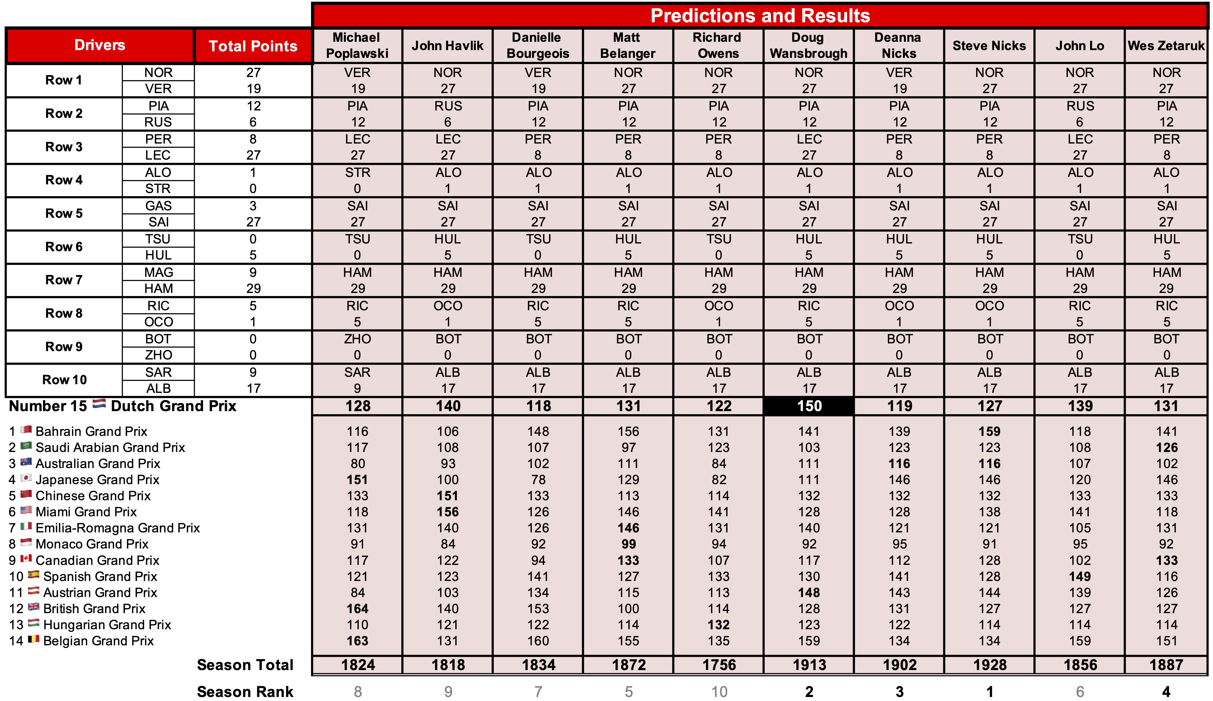 | Through Round 15 🇳🇱 Dutch Grand Prix | ||