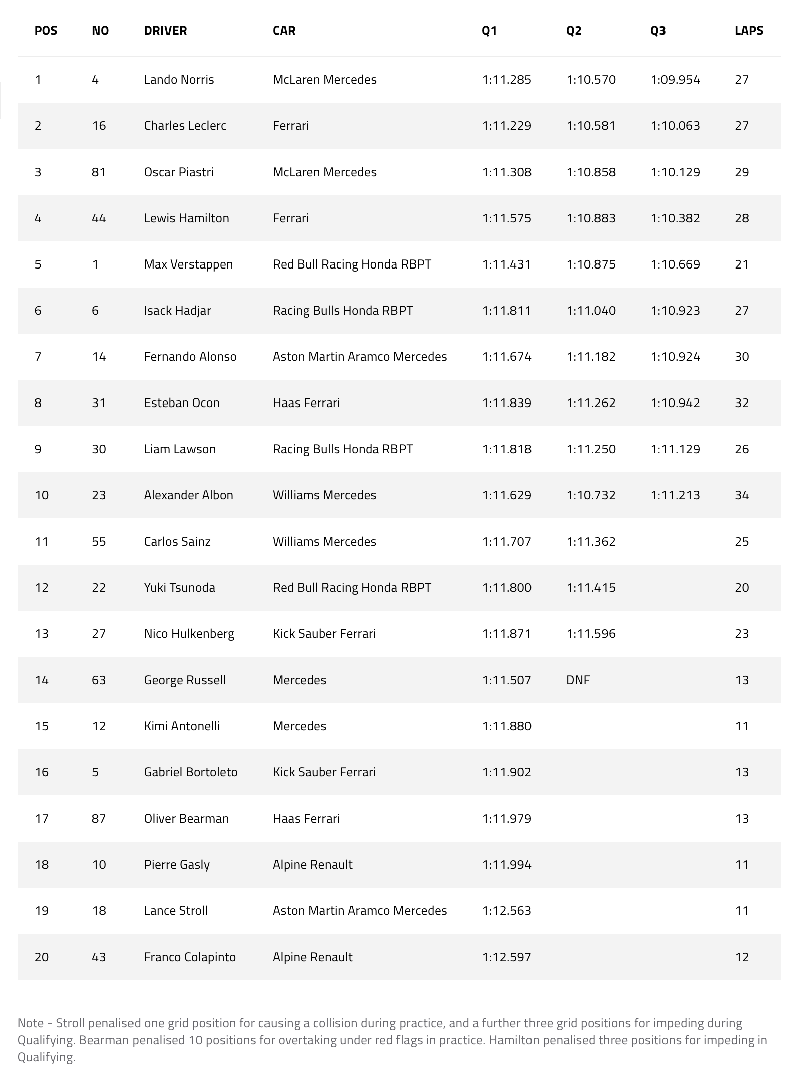 As you may be aware, the Form is based on the Starting Grid listing shown above, published by Formula 1. The driver listing does not reflect the penalties. This is not typical of Formula 1, and as I ordinarily have faith in the listing being correct, the Form was published based on the driver listings.