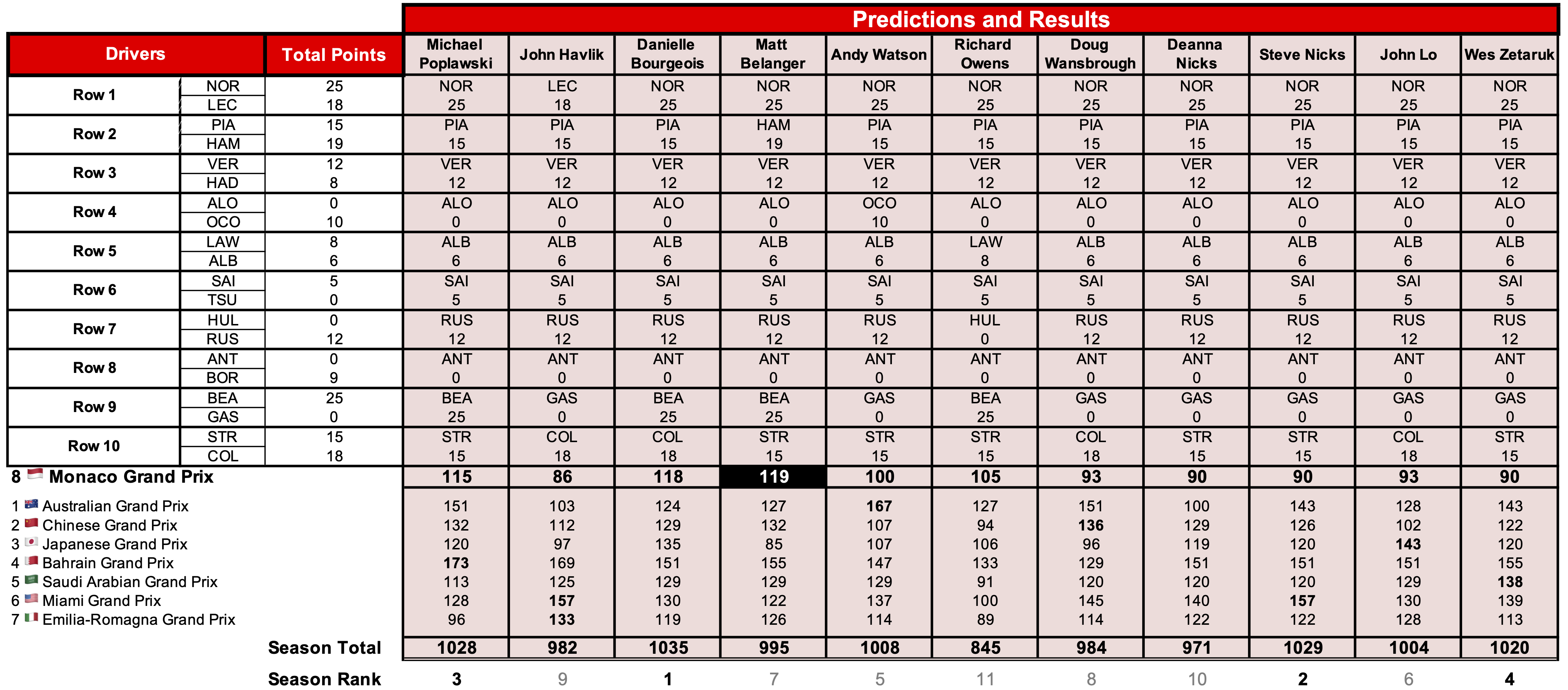 | Through 8 🇲🇨 Monaco Grand Prix | ||