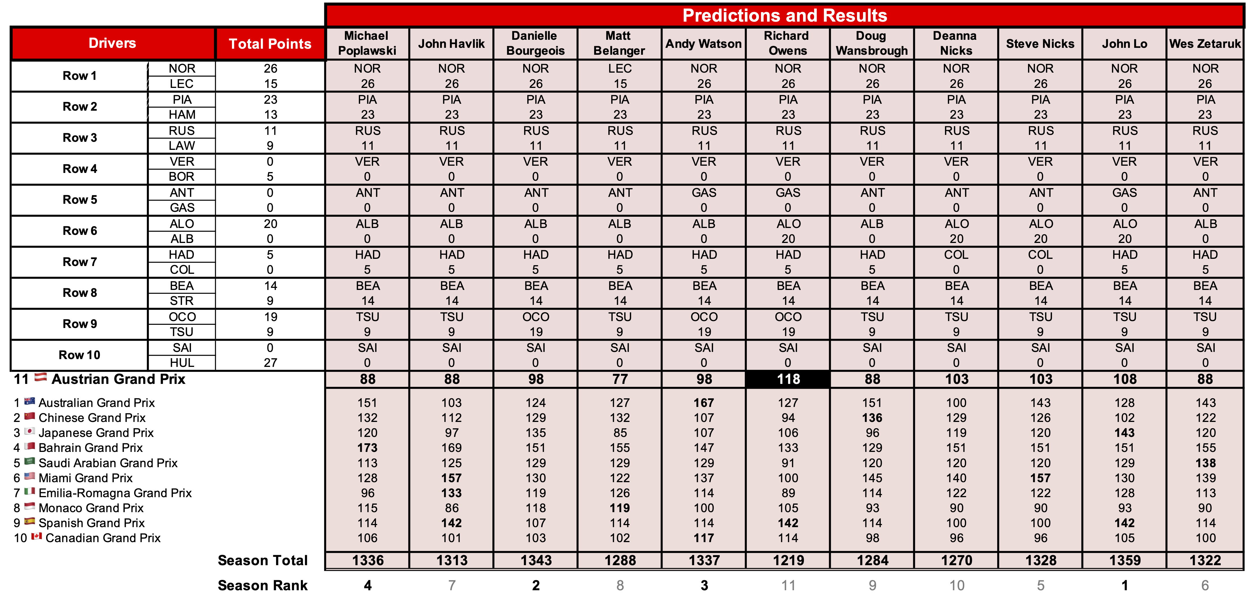 | Through 11 🇦🇹 Austrian Grand Prix | ||