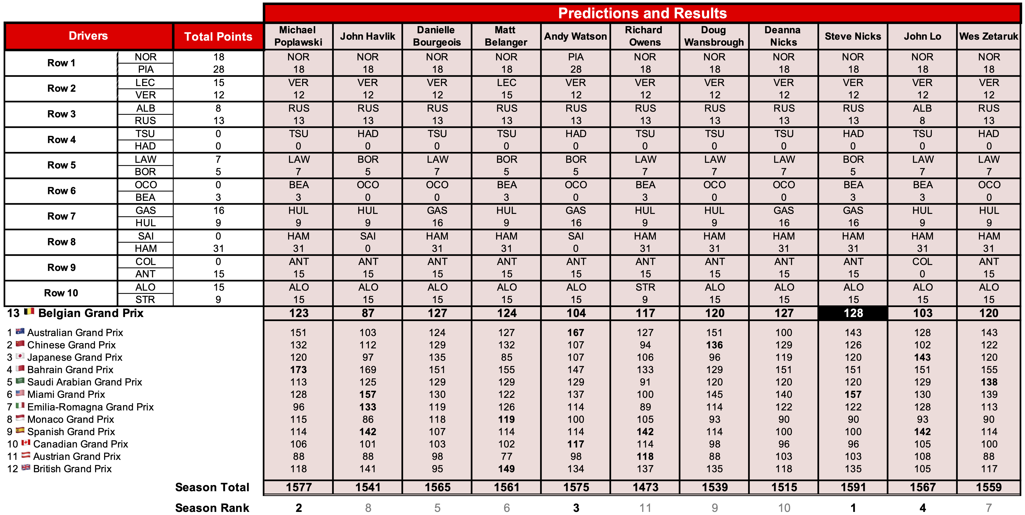 | Through 13 🇧🇪 Belgian Grand Prix | ||