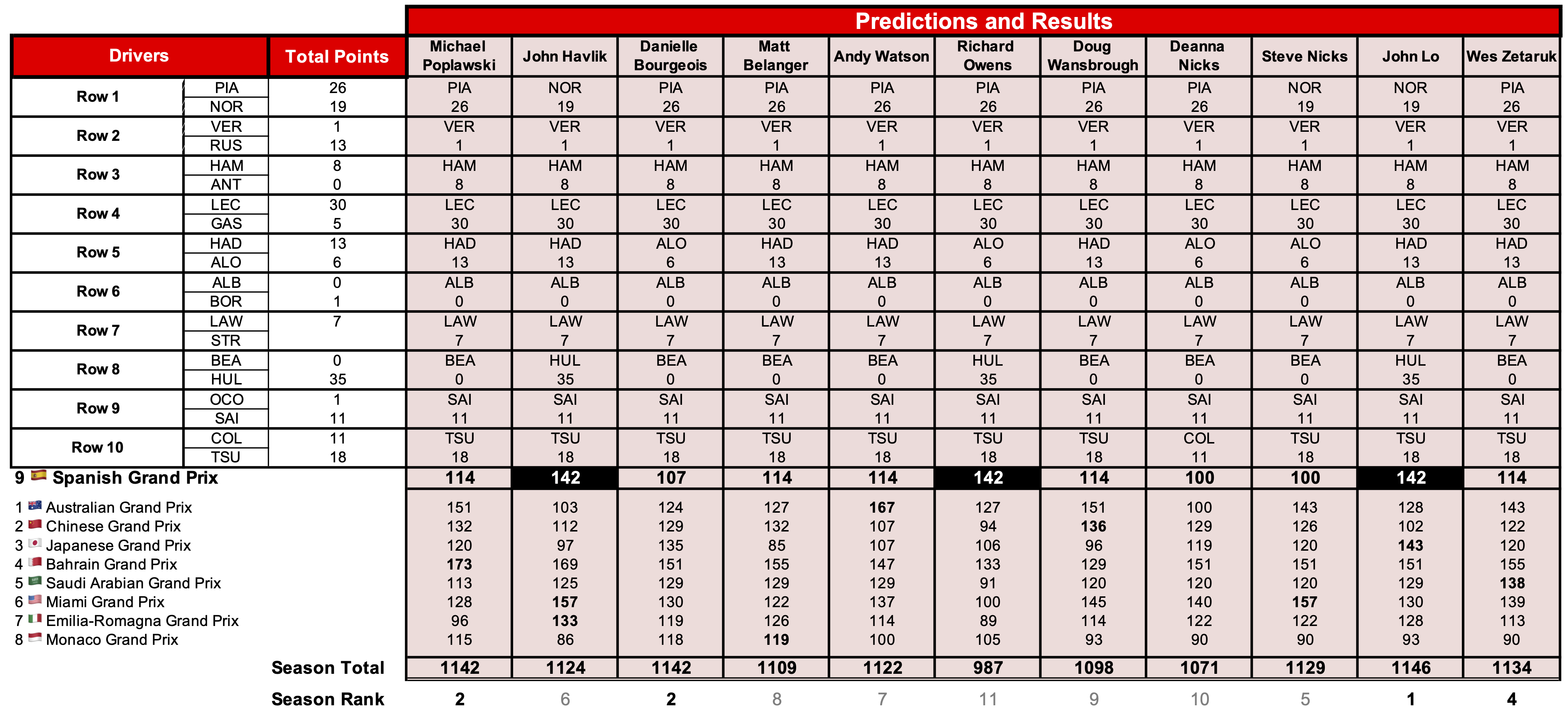 | Through 16 🇮🇹 Italian Grand Prix (tiebreakers applied) | ||