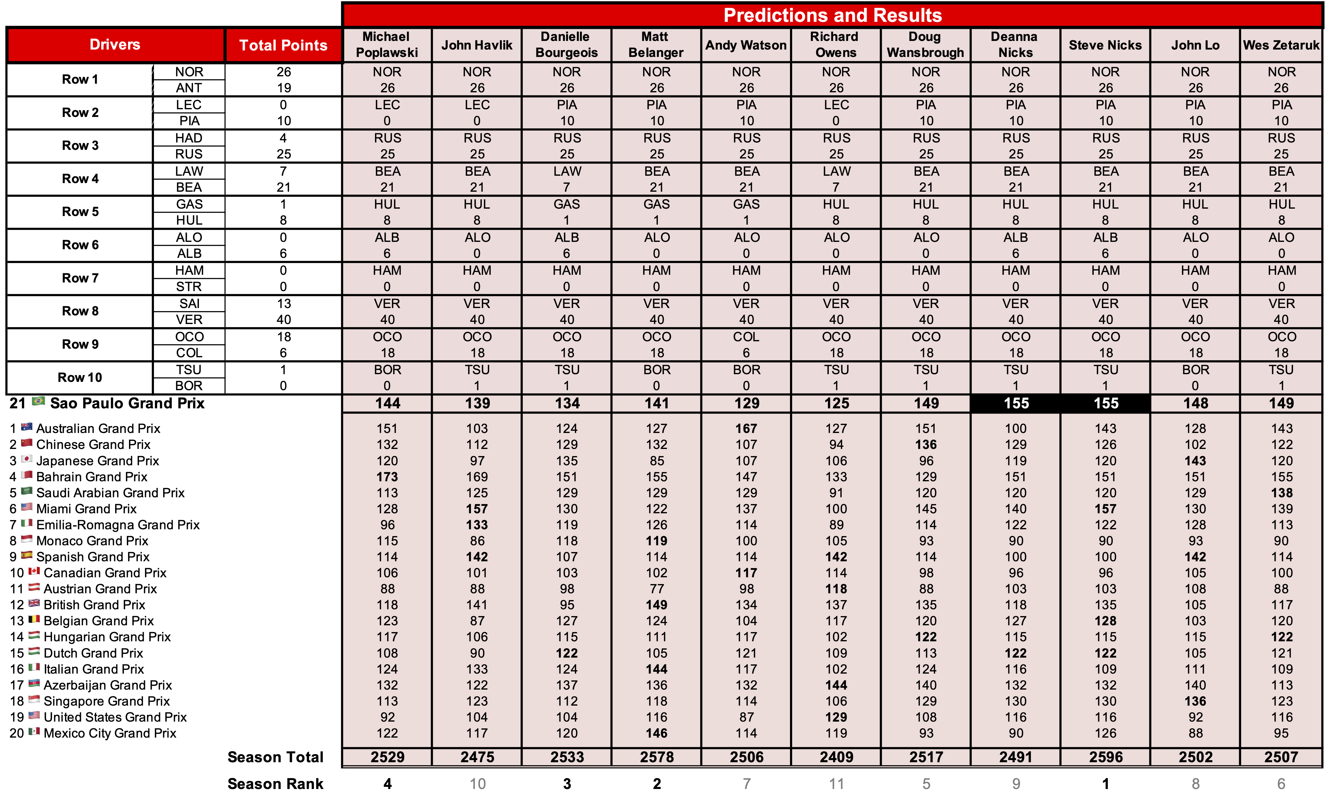 | Through 21 🇧🇷 Sao Paulo Grand Prix | |||